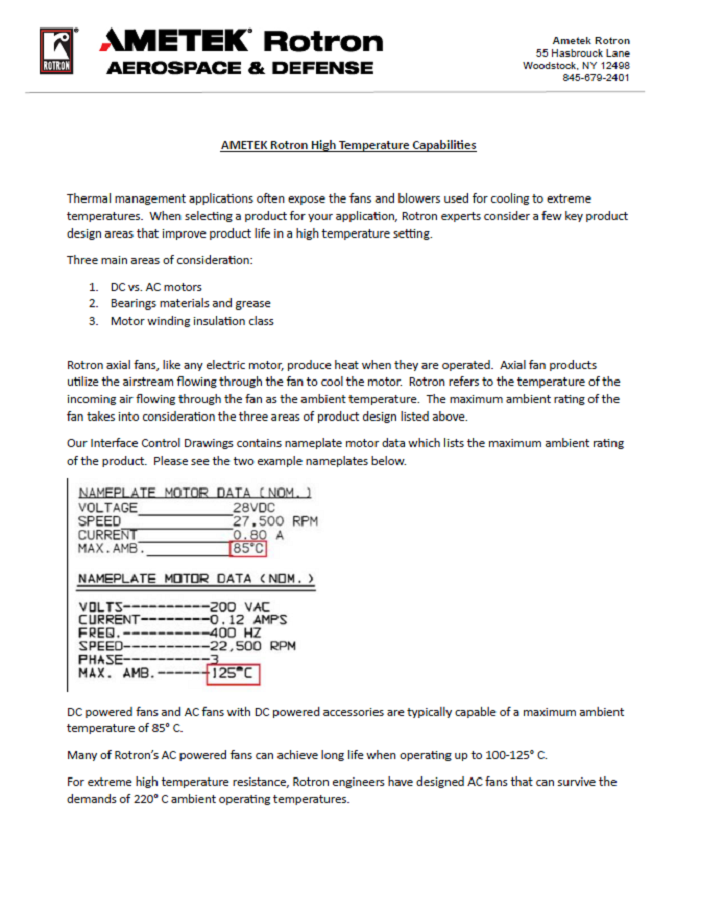 Welcome to AMETEK Rotron’s White Paper Library. We recognize that fans tend to be one of the few dynamic components in an electronics sub-system and therefore require a great degree of attention for a system design perspective. For this reason, we have compiled a set of white papers and articles which address specific conditions and considerations related to fans. The viewer is encouraged to use our library as a resource.